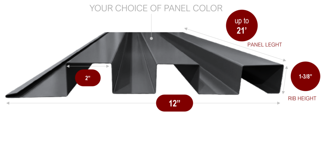 Bermuda style roof panel, is easily installed horizontally from eave to ridge with concealed fasteners and clips.